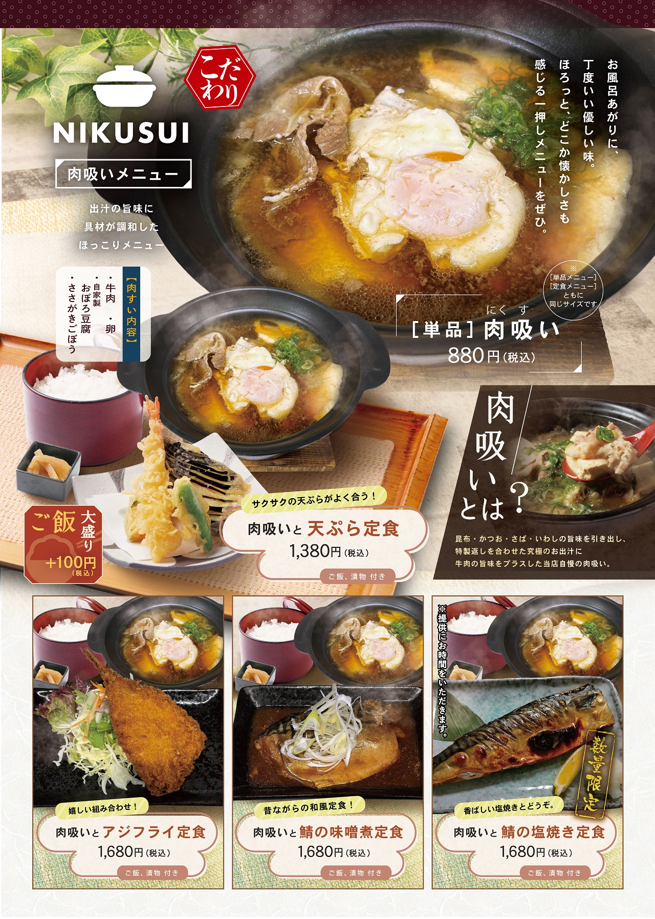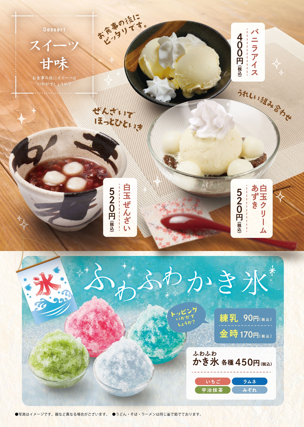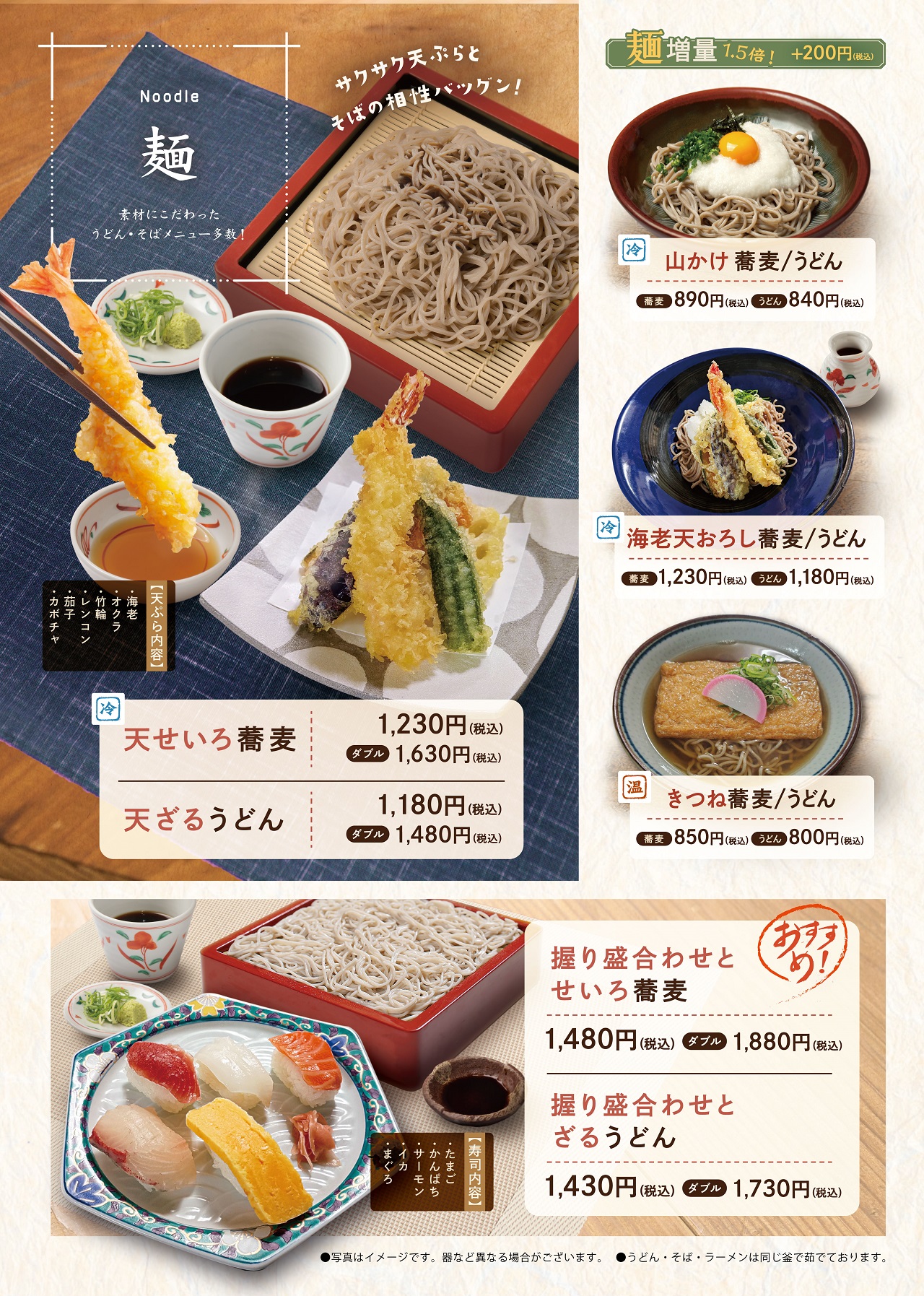 お食事処「ほっこり亭」では、蕎麦、寿司、定食、麺類、丼類、韓国料理など充実したラインナップで、ご飲食をお楽しみいただけます。その他にも、ドリンク、お子様メニュー等種類が豊富となっております。